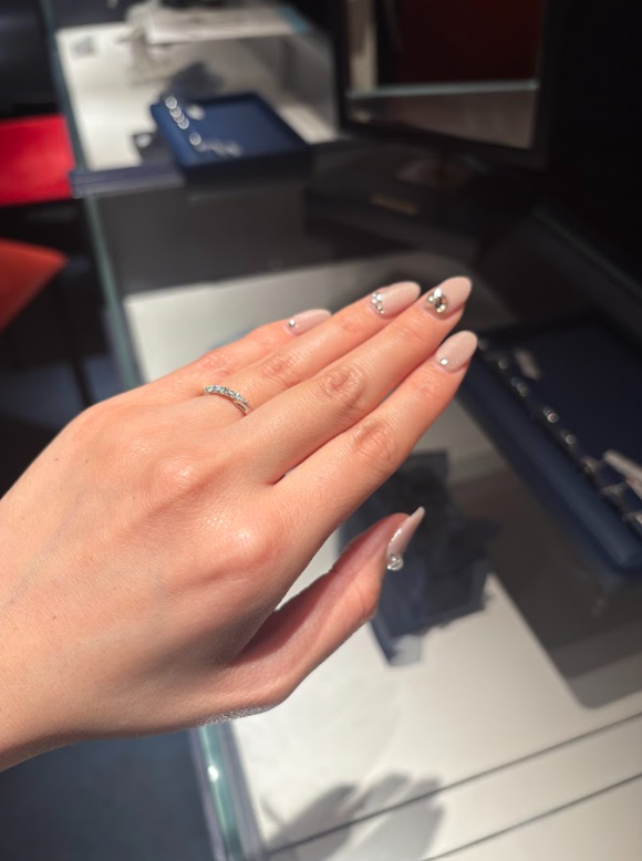 私のための指輪っていう特別感がよかったです!日常になじむけど、特別感があって、ちゃんとダイヤがキラキラしているのに上品で最高!!!他店で選ぶこととかを忘れて、この中でどれにしようって考えになりました!